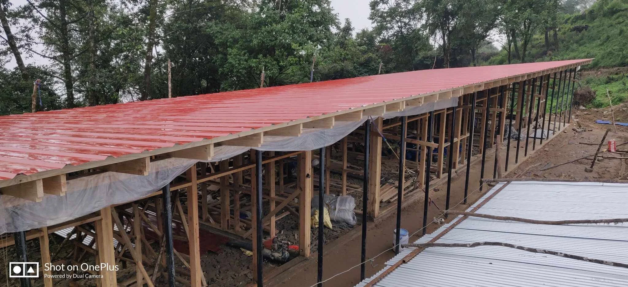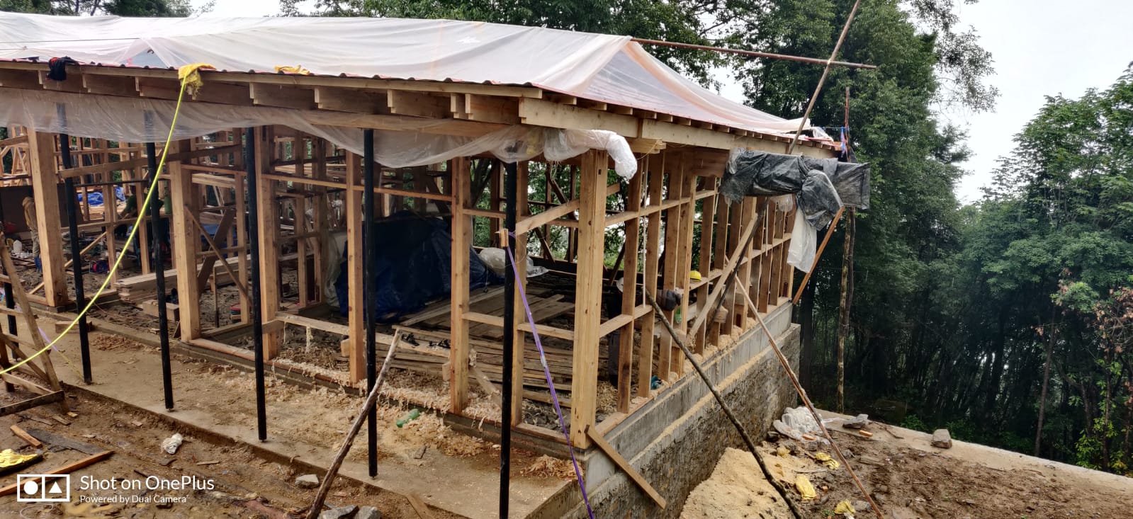 Sonam hat mit seinem Arbeitertrupp (meist Eltern von Schülern in Yangri) fast übermenschliches geleistet: die Fundamente von drei Schulgebäuden sind gelegt, und ein Schulgebäude steht tatsächlich im Rohbau da, inklusive Dach.